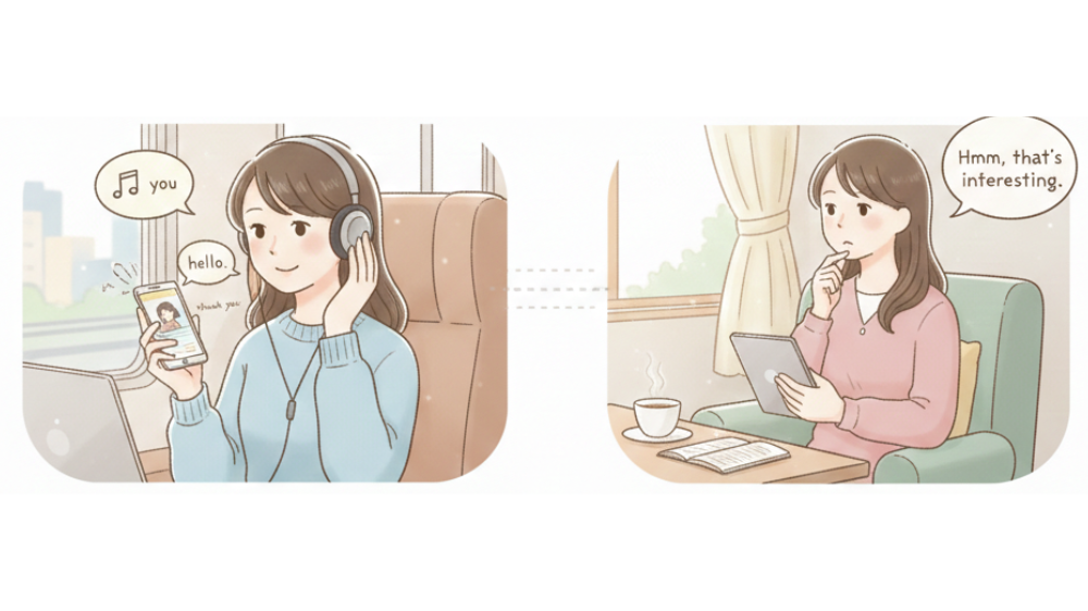 無料サービスだけでは、実際に使う機会が限られることもあります。そこで、独り言を英語で言ってみる、見た動画の内容を英語で思い出すなど、外部に頼らない使い方を取り入れています。誰かに見せる必要がない分、気軽に試せる点が継続につながります。