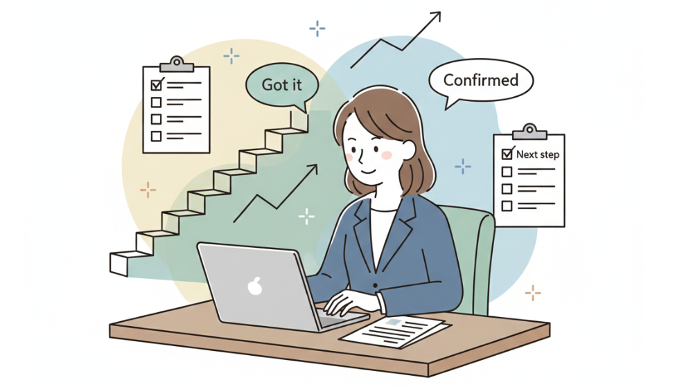 英会話を独立したスキルとして捉えると、学習の負担は大きくなりがちだ。一方で、報告、確認、共有といった業務の流れの中に英語を位置づけると、使う場面が明確になる。どの工程で英語が必要なのかを意識することで、学ぶ内容も絞りやすくなる。
